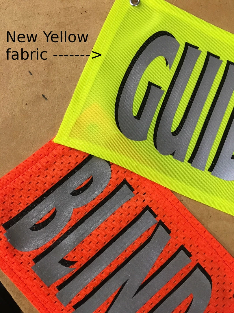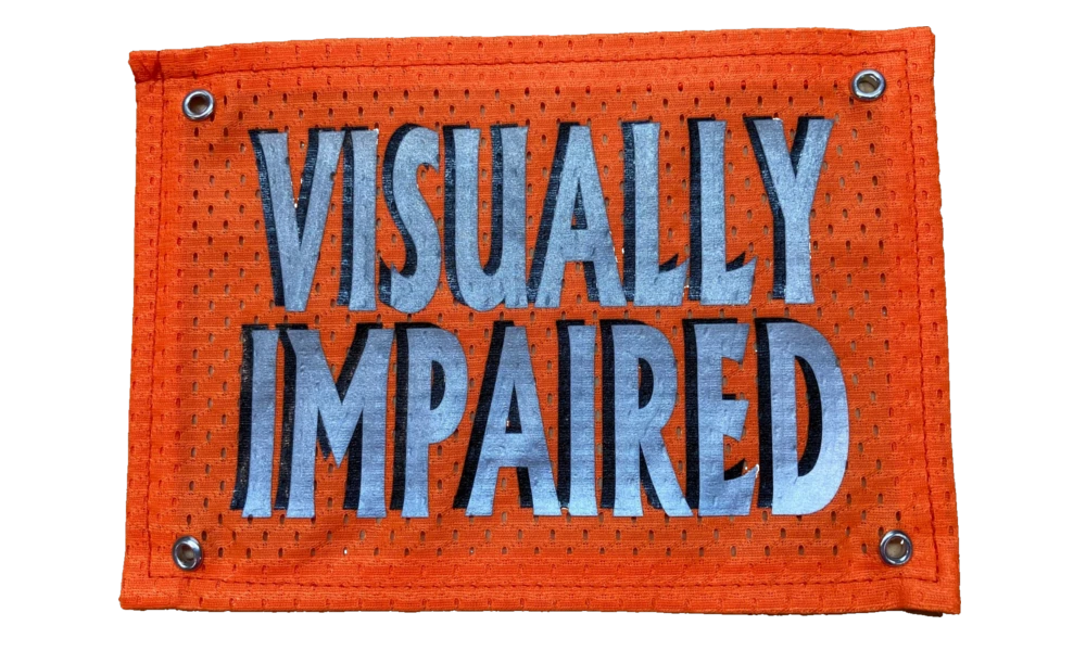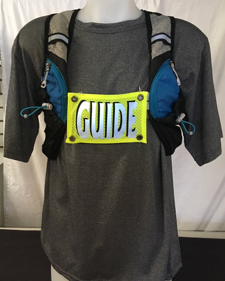 As an alternative to our popular reflective running vests we now offer semi-custom reusable high visibility bibs. They feature a lightweight mesh polyester fabric and reflective lettering laid over black for a beveled, high contrast look–perfect for both day and night. Pin to your shirt, belt, jacket, hydration pack, backpack, hat, etc.Â
