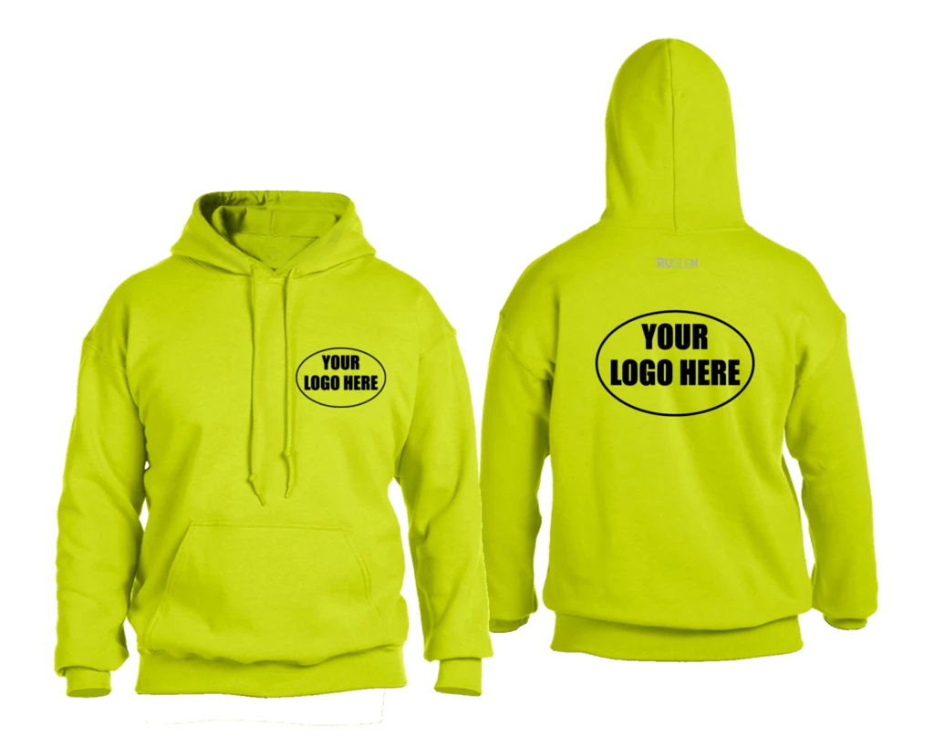 Our high visibility hooded sweatshirt is the perfect safety apparel for your business. Vibrantly colored with your companies logo! A great way to keep your employees safe and promote your business.