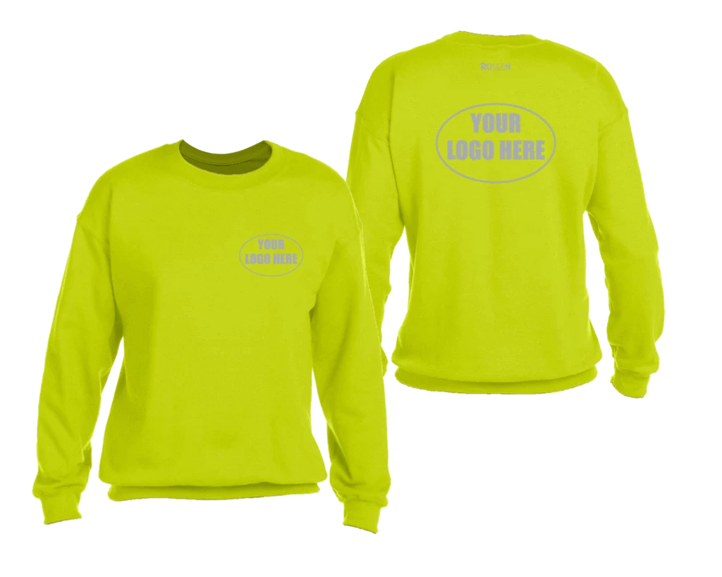 Our high visibility sweatshirt is the perfect safety apparel for your business. Vibrantly colored with your companies logo in reflectivity! A great way to keep your employees safe and promote your business.