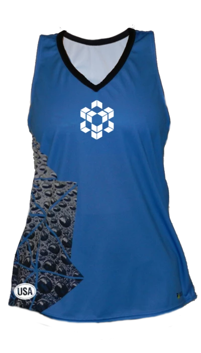 This shirt is completely designed, sublimated, cut, sewn & the reflective is applied right here in Berks County Pennsylvania! Summer is off to a hot start already & we need to stay cool & hydrated. The water drop sublimation picks up on our popular geometric theme & the reflective elements feature a new hexagon design available only on this shirt. There’s also a small RUN logo on the back neck & a USA oval on the bottom right.