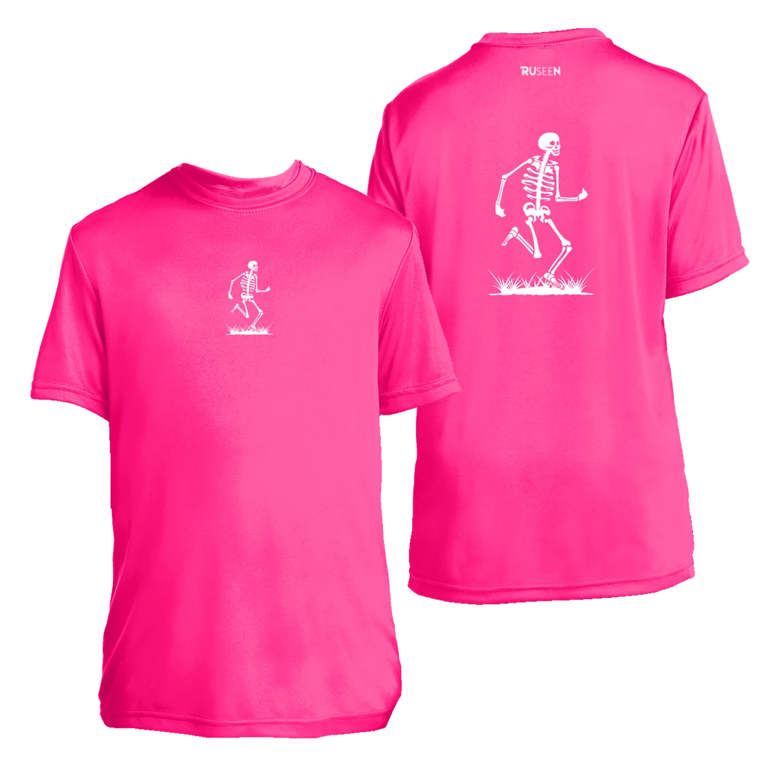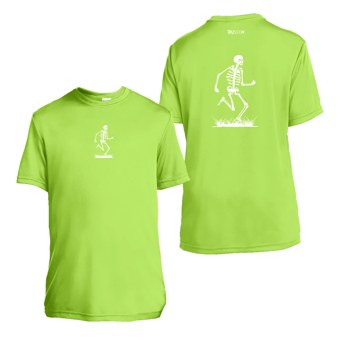 Our original running skeleton logo remains a best seller.  The high vis colors & large reflective graphic will make sure that your child is seen when it counts during the day & in low light conditions.