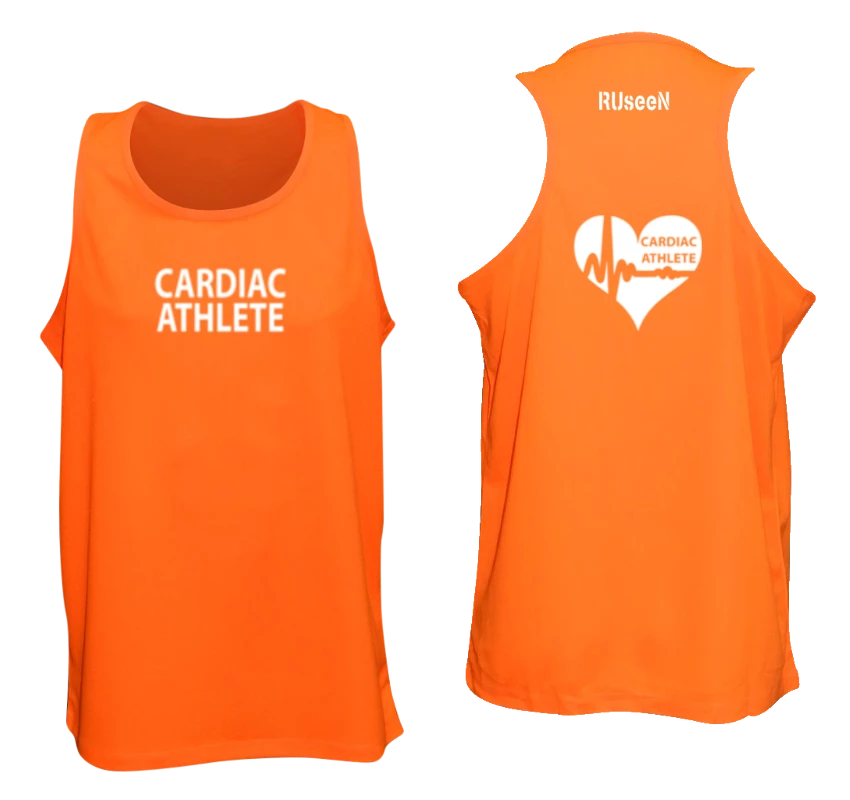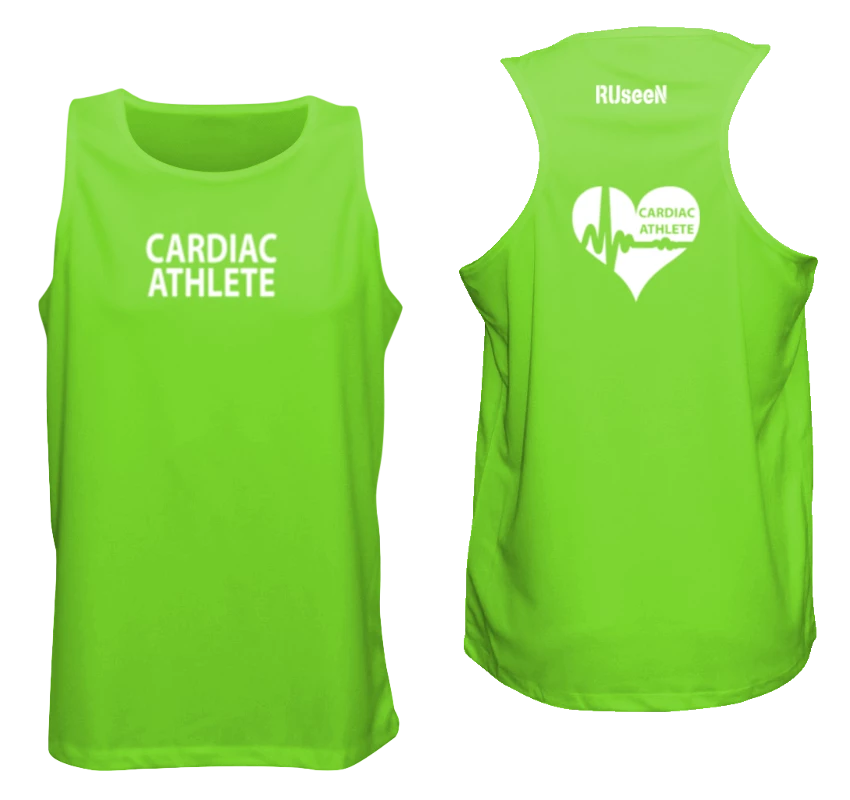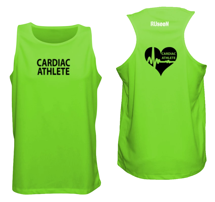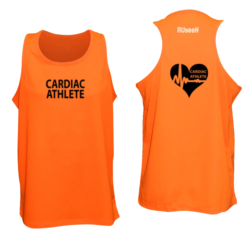 If you’d like an alternative to our reflective Cardiac Athlete running vest we now offer tank tops with your choice of reflective or black text front and back. We’ve offered it in our 3 most popular colors, if you’d like some other options please email us for availability.