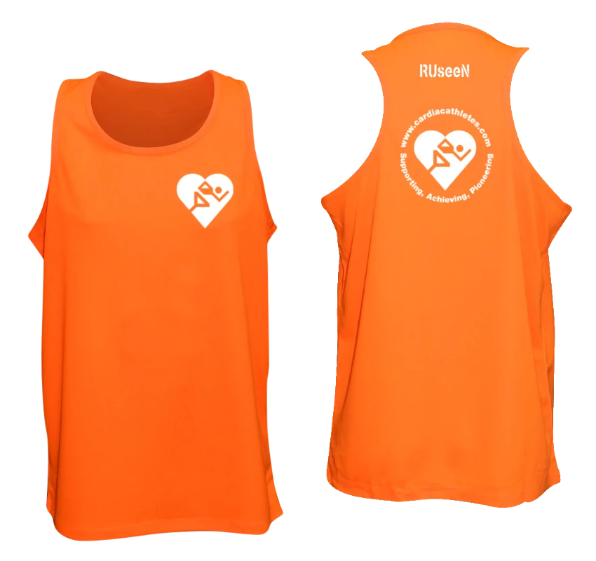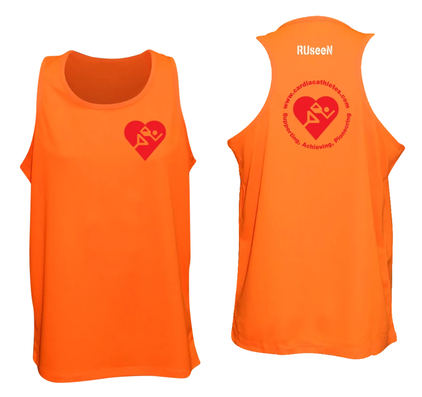 Logo use permitted by cardiacathletes.org. We now offer sleeveless tank tops with your choice of reflective or red logos front and back.  Please note that the version with the red logo is NOT Reflective, it’s only high vis for daytime.