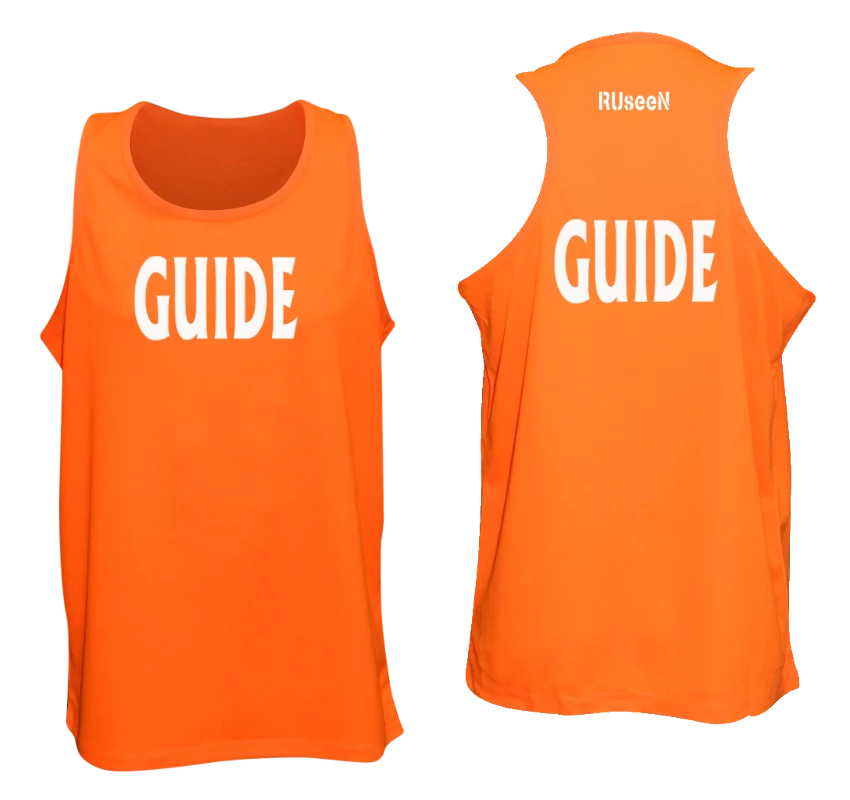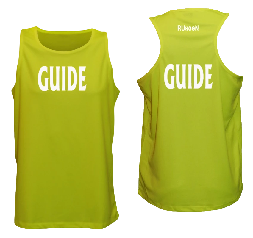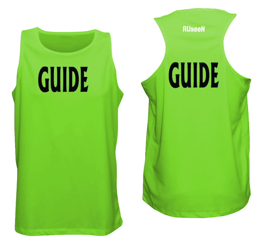 If you’d like an alternative to our reflective Guide running vest we now offer tank tops with your choice of reflective or black text front and back.  The comfortable polyester shirts aren’t just for athletes, they’re great for everyday wear any time or place you may need to make the public passively aware of you. We’ve offered it in our 3 most popular colors, if you’d like some other options please email us for availability.