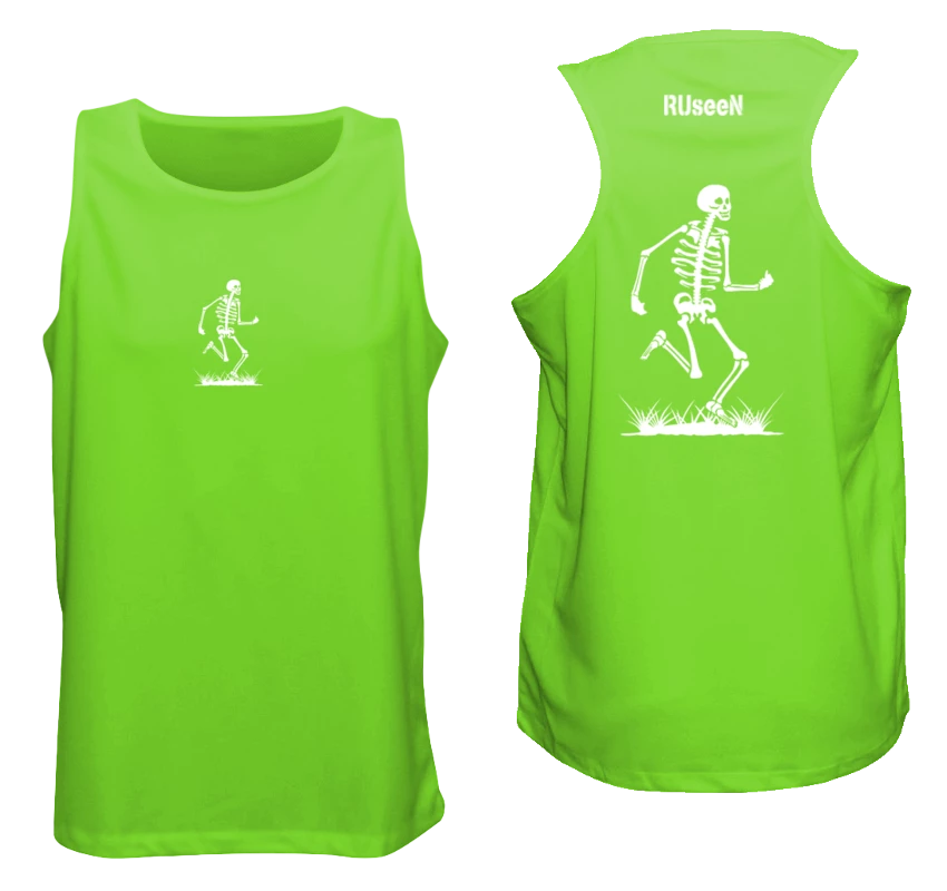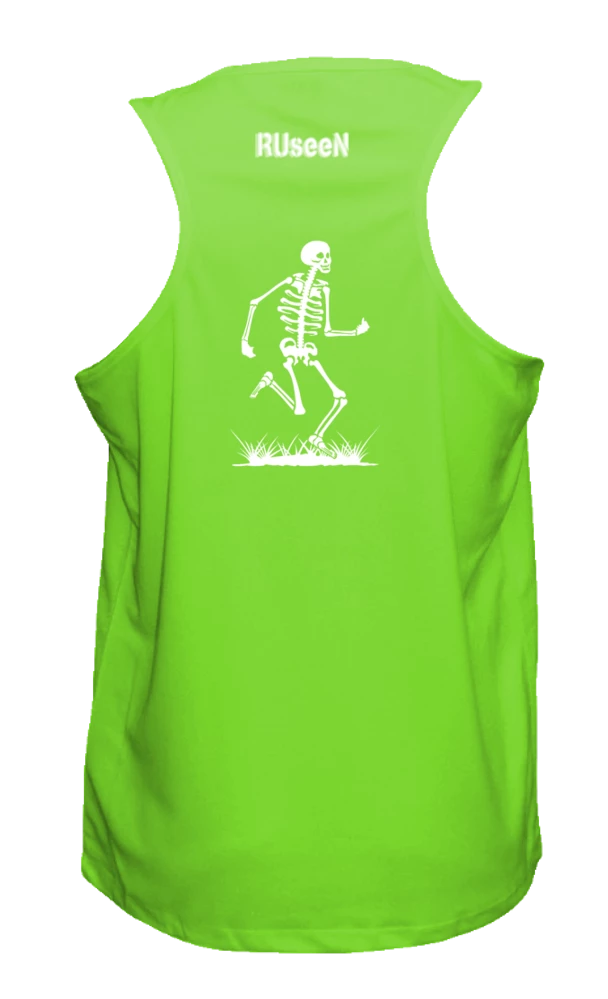 A classic around here, our old skeleton logo placed front and back on your hi-viz tank top. The bright reflectivity is sure to help keep you safe and seen all while looking stylish whether you are on your run or sitting at home.