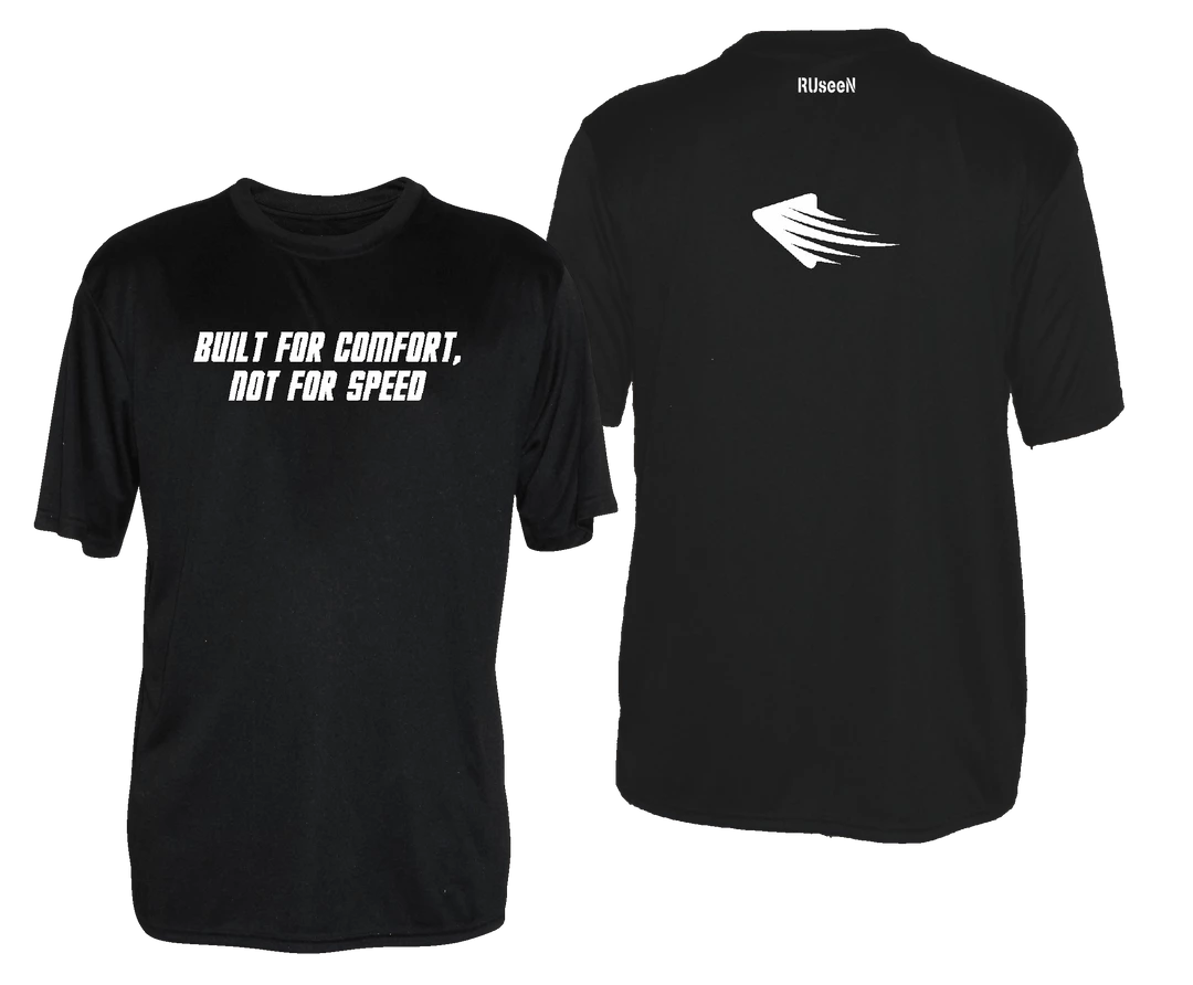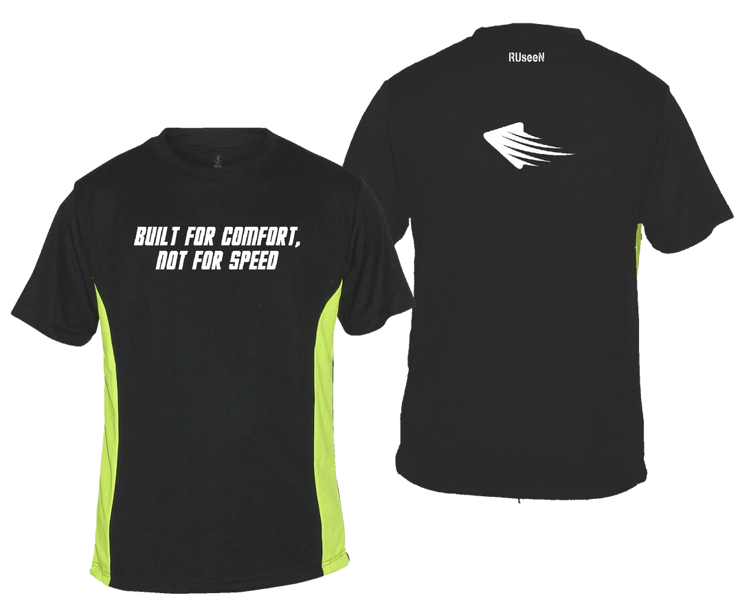 Runners have more fun at the back of the pack! This new design will keep you comfortable & visible with humor, directing those behind you to go on around.