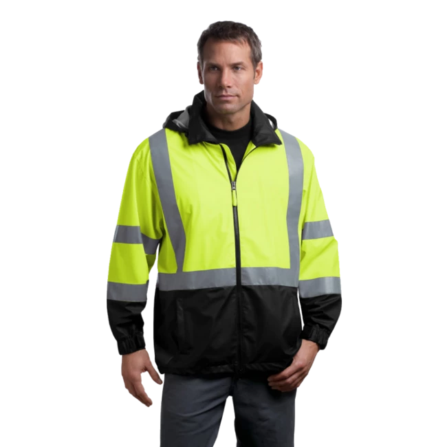 Stay safer in inclement weather in this high-visibility windbreaker.