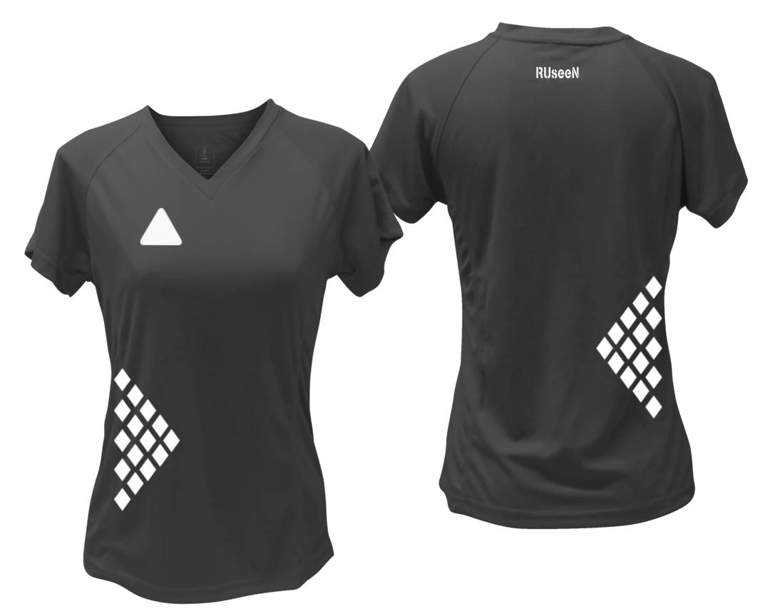 The women’s reflective Diamond Pattern short sleeve shirts are a must-have for the nighttime athlete. Featuring a stylish Diamond Pattern design on front and back to give you hi-viz, reflective coverage as you are working out.