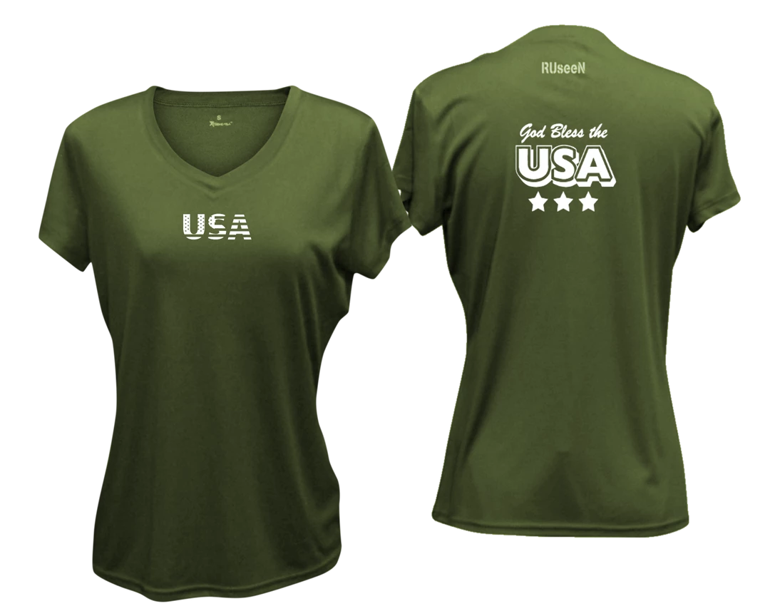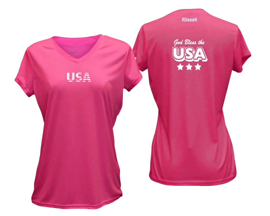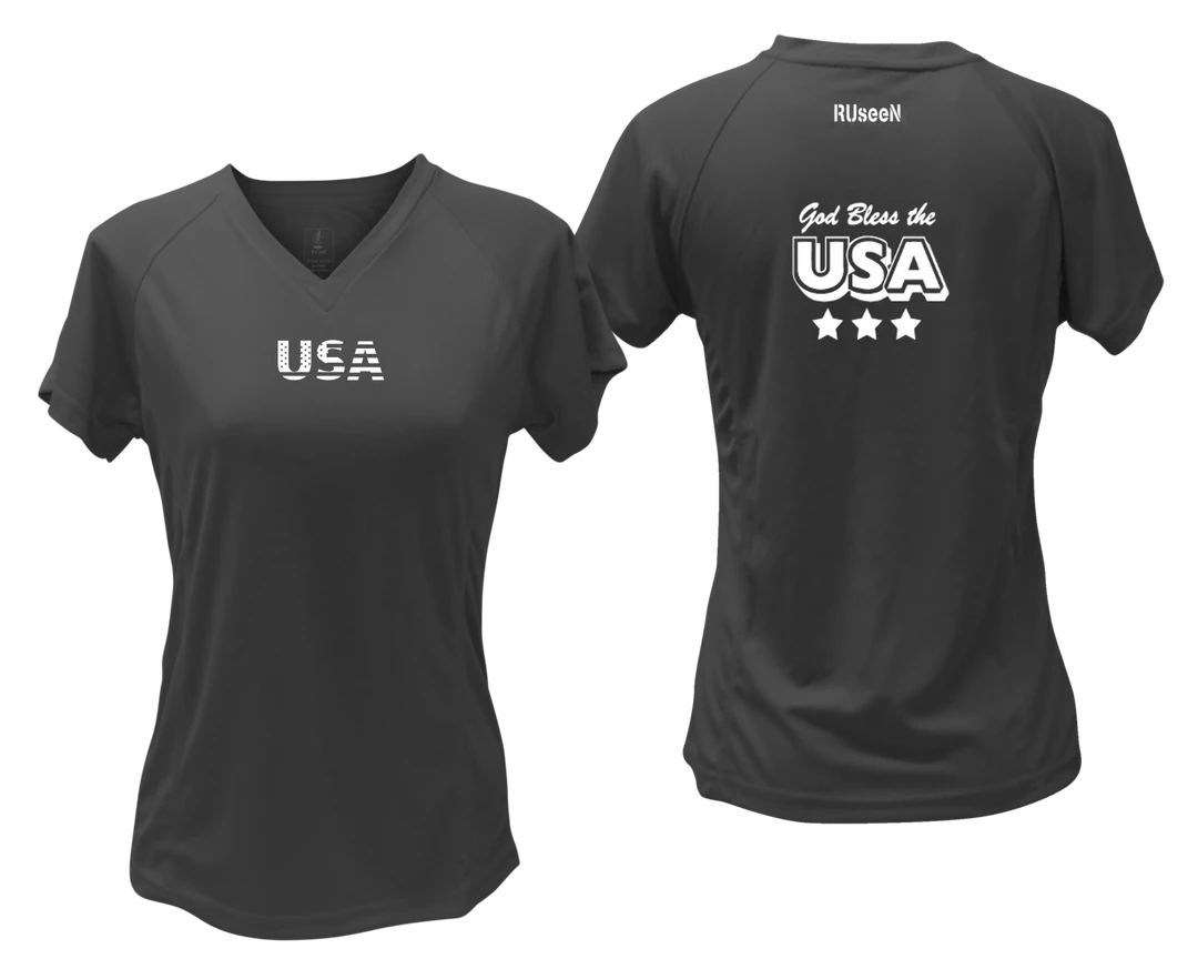 RUseeN Reflective Apparel Women’s Reflective Short Sleeve Shirt – God Bless The USA