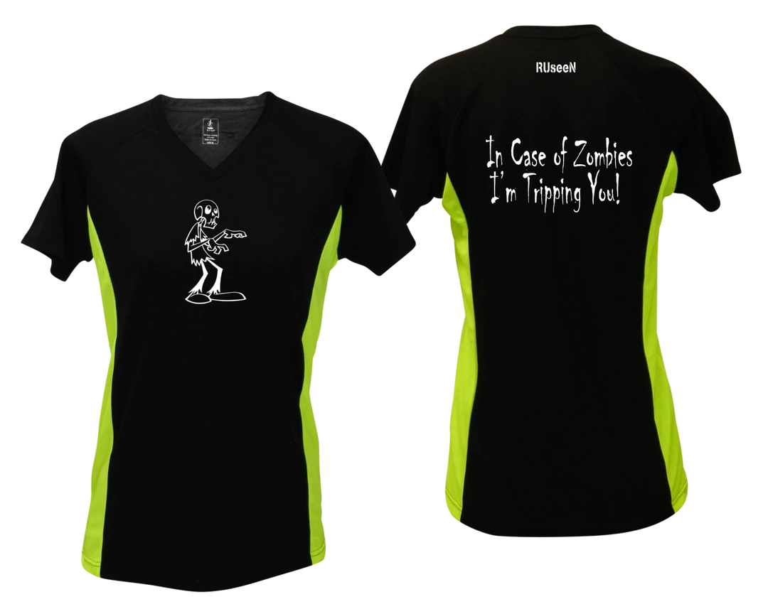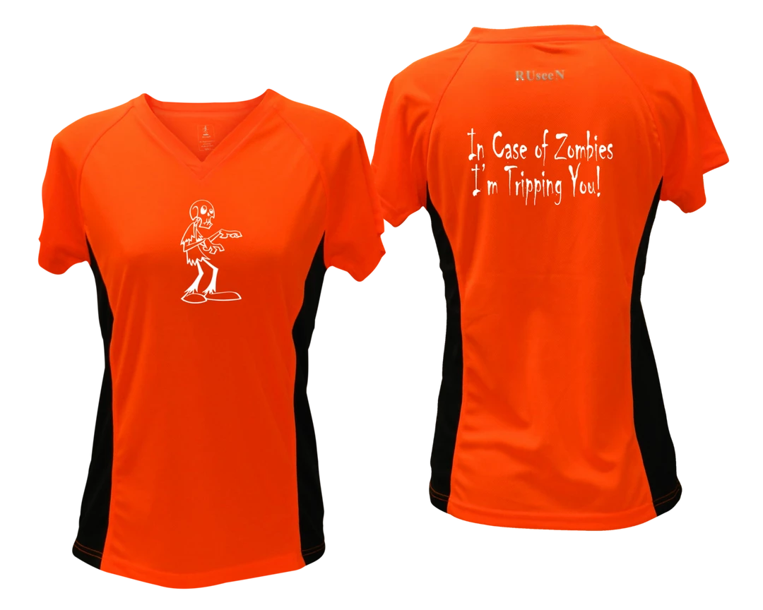 - Back: Reflective “In case of zombies, I’m tripping you!”