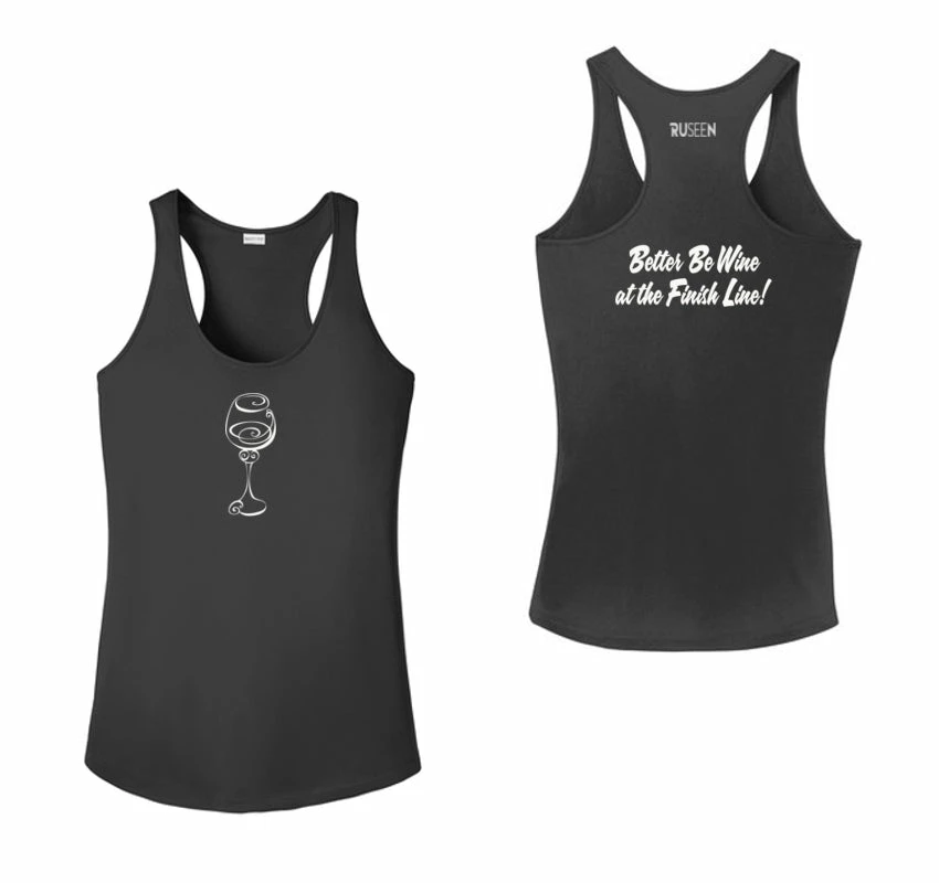The perfect shirt for all wine lovers out there, Better Be Wine at the Finish Line isn’t just a fun message to put on a shirt, if you ask us… its a way of life. This reflective racerback tank top is sure to be a favorite of yours and fellow wine enthusiasts.