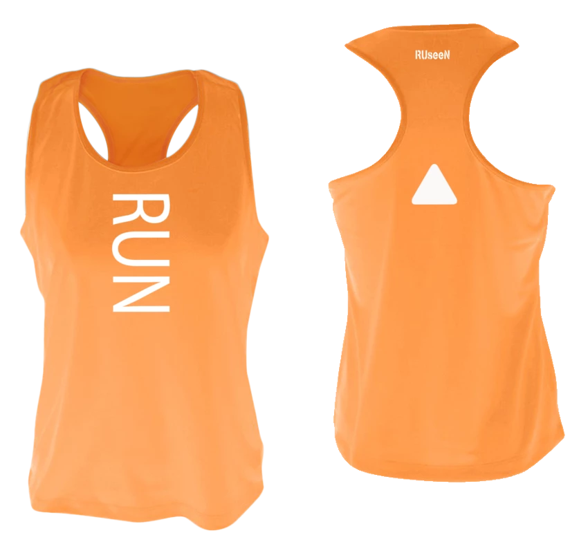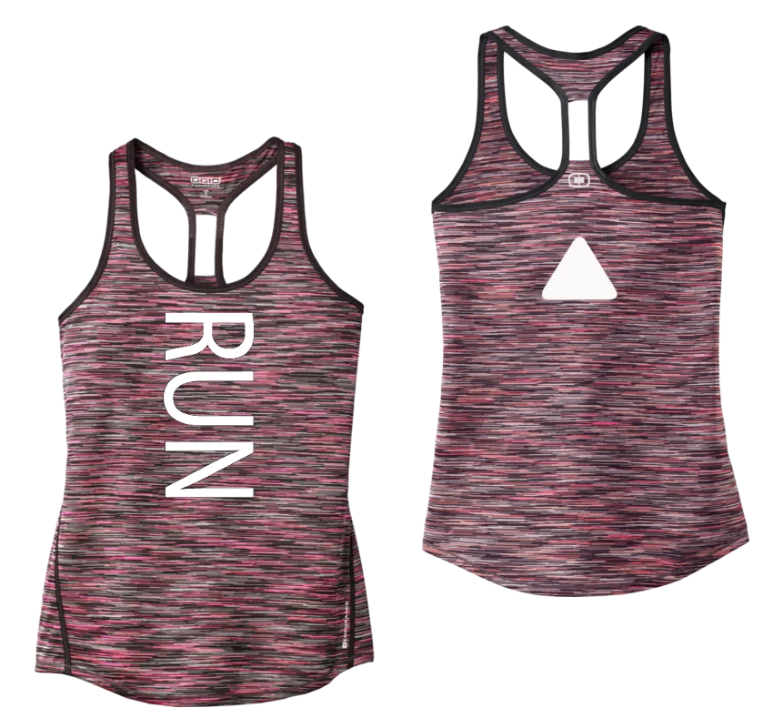 The women’s reflective RUN tank top loudly proclaims your passion for the sport. The large reflective text makes you highly visible day and night and the back triangle is a simple but effective beacon.Â