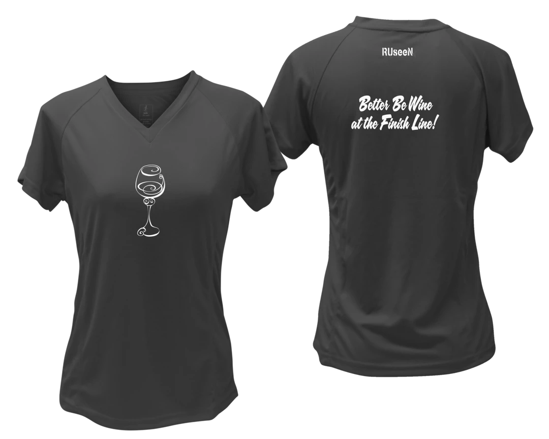 The perfect shirt for all wine lovers out there, Better Be Wine at the Finish Line isn’t just a fun message to put on a shirt, if you ask us… its a way of life. This reflective short sleeve shirt is sure to be a favorite of yours and fellow wine enthusiasts.