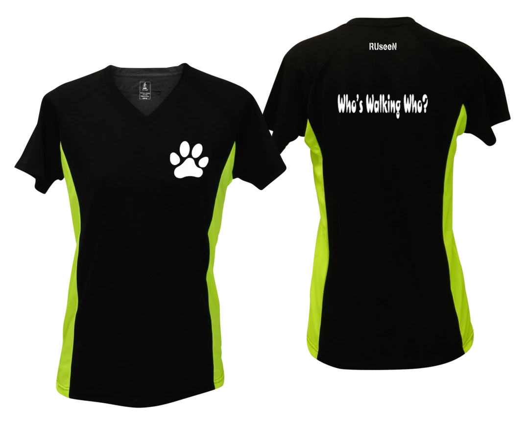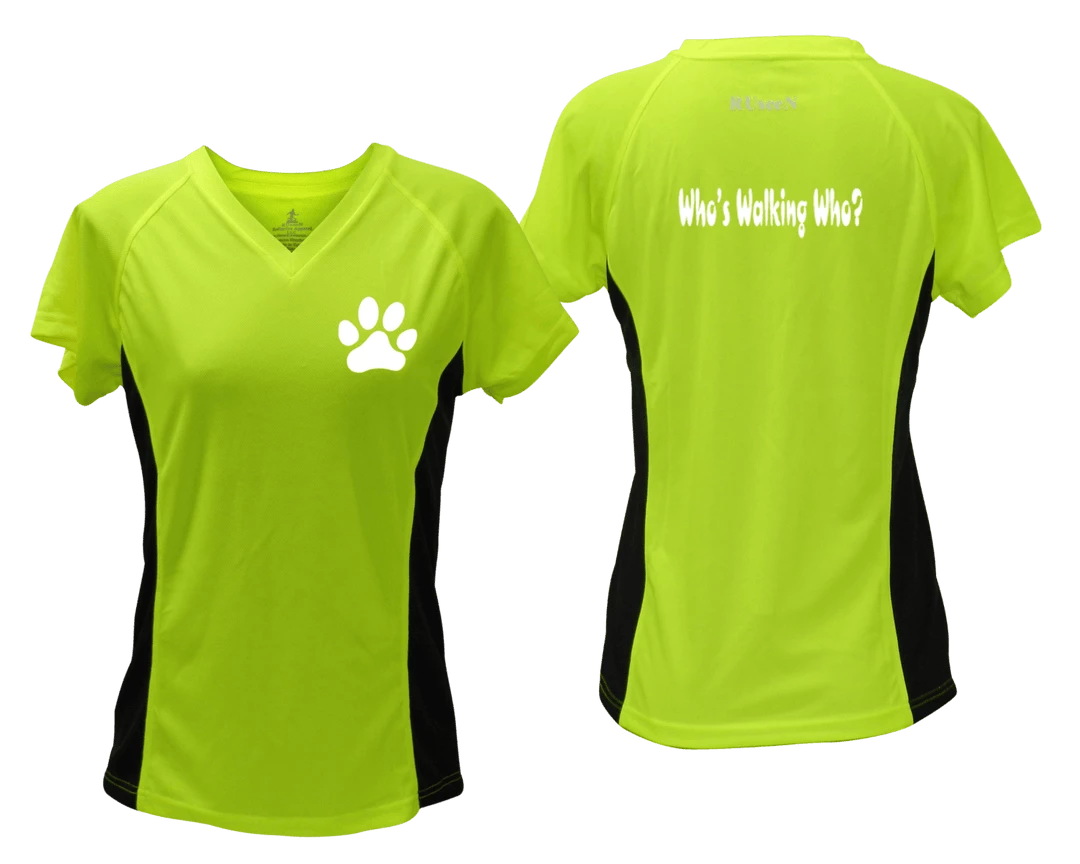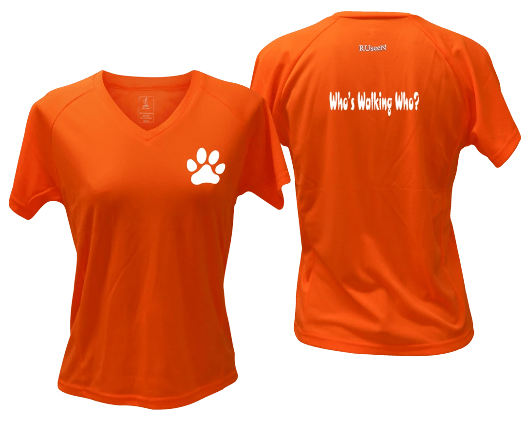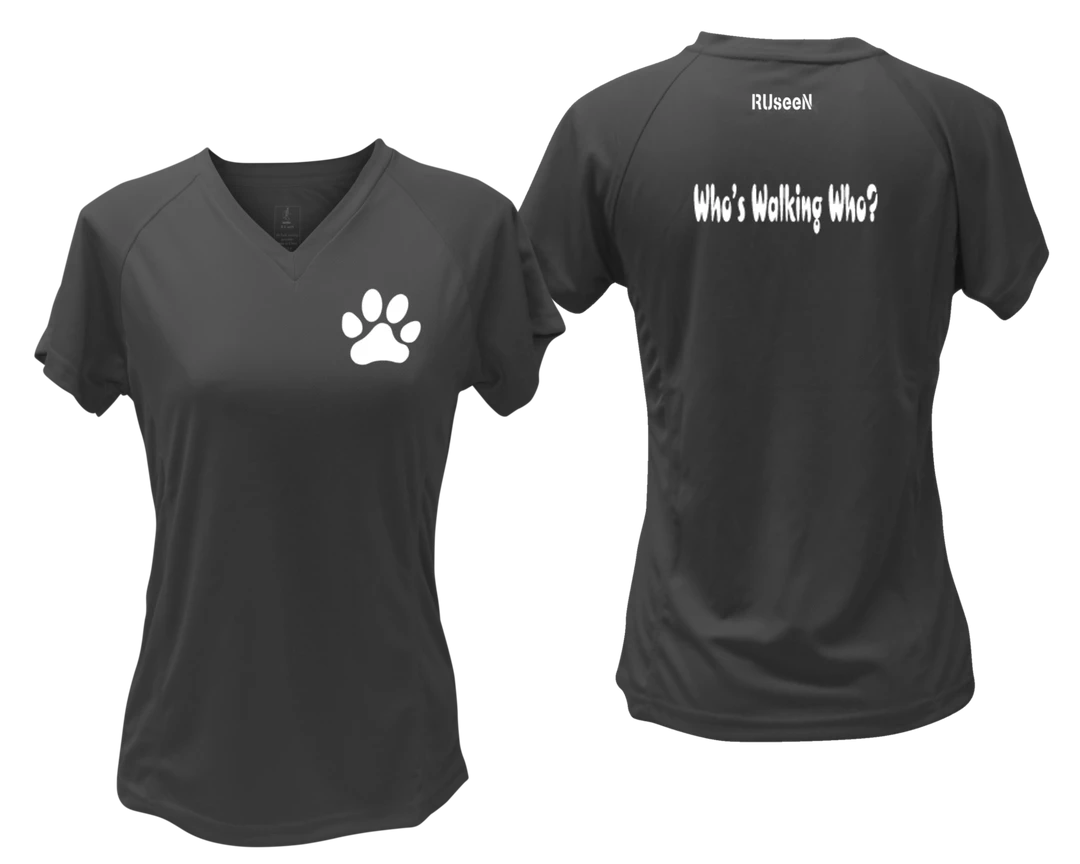 Big or small, sometimes the canine is the one walking his human! The women’s reflective short sleeve Who’s Walking Who shirt will keep you both safe on your many trips outdoors.